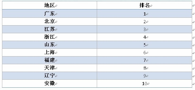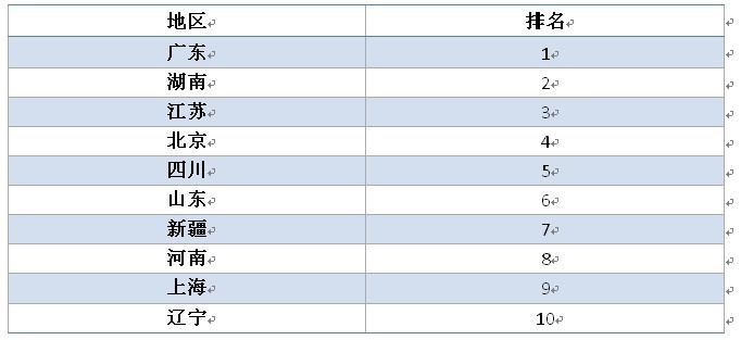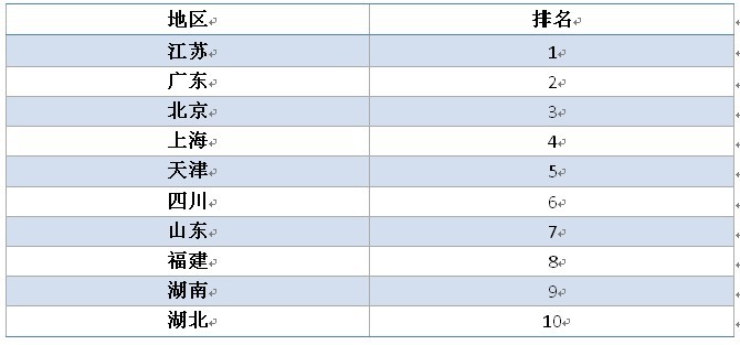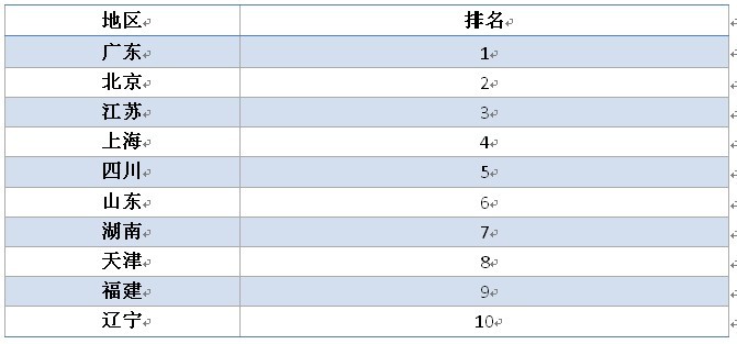 去年廣東、北京、江蘇位列三甲