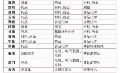 從表2可以看出,一個地區(qū)有效專利的領(lǐng)域分布往往能體現(xiàn)出該地區(qū)的經(jīng)濟結(jié)構(gòu)和主要的行業(yè)特征。如廣東以數(shù)字通信為主,電信、計算機技術(shù)為輔的有效專利領(lǐng)域分布情況,可以從國內(nèi)最大的民營電信、通訊企業(yè)華為、中興以及計算機行業(yè)的佼佼者騰訊身上清楚而直接地體現(xiàn)出來;中國臺灣半導體芯片制造業(yè)全球第一,計算機軟件全球領(lǐng)先,這樣的地位與表中所示其有效專利領(lǐng)域的分布非常匹配。