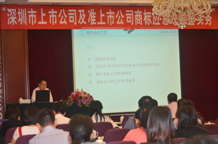 為落實深圳市商標發(fā)展戰(zhàn)略,進一步增強上市及準上市公司的商標戰(zhàn)略意識,幫助上市及準上市公司應對商標的各種問題,同時也樹立公司商標規(guī)范管理的范例,4月24日,深圳市知識產(chǎn)權局在迎賓館舉辦“深圳市上市公司及準上市公司商標應急及預警實務”培訓班,深圳市上市公司及準上市公司的研發(fā)管理人員、創(chuàng)新項目管理人員、知識產(chǎn)權管理部分的人員、行業(yè)協(xié)會知識產(chǎn)權管理人員及為上市公司和準上市公司提供法律服務的券商、會計師事務所和律師事務所等100余人參加了培訓。