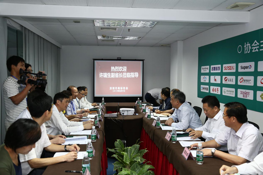 2016年5月10日上午,廣東省副省長(zhǎng)許瑞生率領(lǐng)省政府副秘書(shū)長(zhǎng)趙坤、省工商局局長(zhǎng)凌鋒、省自貿(mào)辦主任鄭建榮、省編辦副主任陳華江、省工商局副局長(zhǎng)錢(qián)永成、張文獻(xiàn)等領(lǐng)導(dǎo),在深圳市委常委田夫、市市場(chǎng)和質(zhì)量監(jiān)管委副主任郭馳、市改革辦和市編辦等領(lǐng)導(dǎo)的陪同下蒞臨市商標(biāo)協(xié)會(huì)調(diào)研商標(biāo)品牌服務(wù)工作,精英知識(shí)產(chǎn)權(quán)集團(tuán)董事長(zhǎng)黃衛(wèi)家,兼任市商標(biāo)協(xié)會(huì)執(zhí)行會(huì)長(zhǎng),對(duì)許瑞生副省長(zhǎng)一行領(lǐng)導(dǎo)的到來(lái)表示熱烈歡迎和感謝,華為、騰訊、比亞迪和中興通訊代表參加調(diào)研會(huì)。
