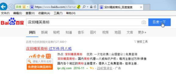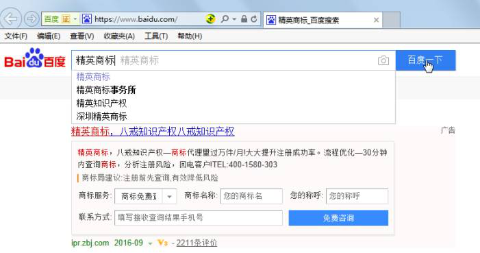 百度輸入“精英商標(biāo)”、“精英商標(biāo)事務(wù)所”、“深圳精英商標(biāo)”關(guān)鍵詞,搜索結(jié)果顯示“豬八戒”