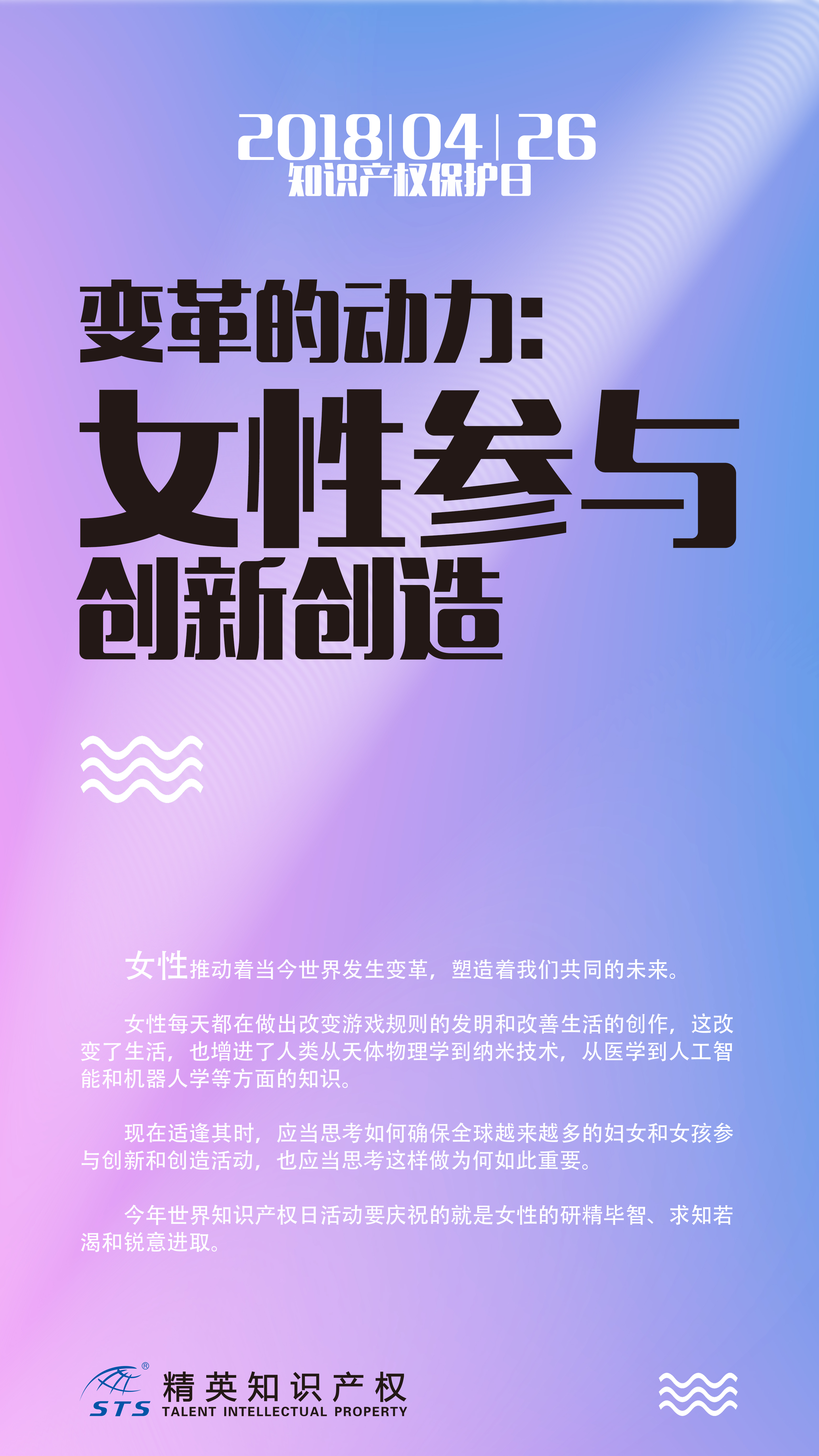 在創(chuàng)新創(chuàng)業(yè)的今天,第18個世界知識產(chǎn)權(quán)日提出了“變革的動力:女性參與創(chuàng)新創(chuàng)造”的主題。作為創(chuàng)新創(chuàng)造的護航者,精英集團的女性領(lǐng)導所呈現(xiàn)的創(chuàng)造力與行動力,是其內(nèi)心堅韌、包容的品格和精神的外在延伸與體現(xiàn)。她有著敏銳的視角和判斷力,并不斷通過其女性之美、之力,攜手精英集團,展示其作為知識產(chǎn)權(quán)女性的獨特魅力,也拓展著女性成長的邊界。