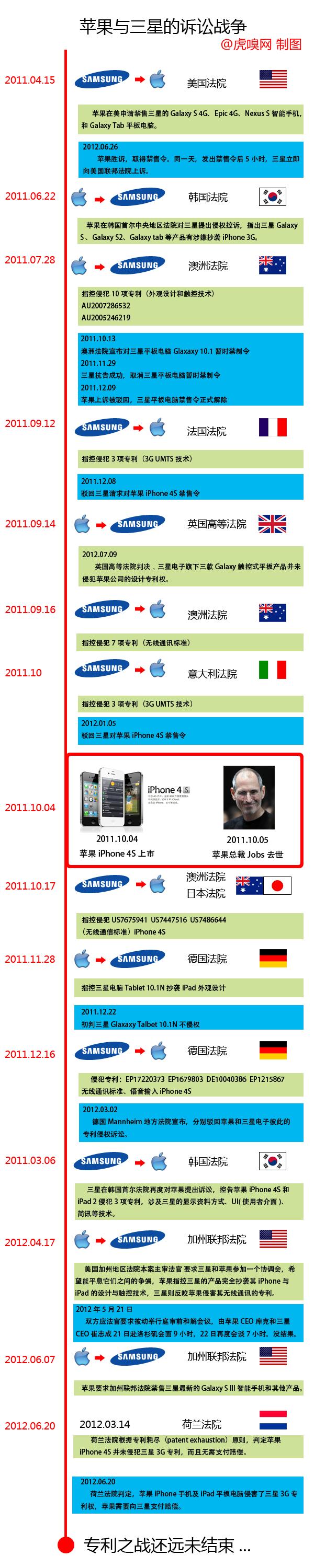 下面,虎嗅就為你大略盤點過去這6個月中,蘋果與三星盤根錯節(jié)的訴訟對攻史,助你全盤了解這場世紀(jì)之戰(zhàn)的劇情,請不要暈。
