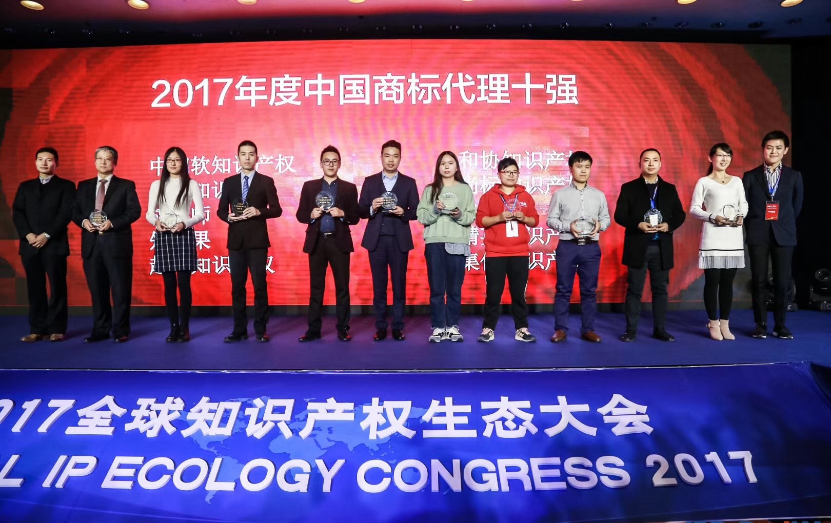 榮譽(yù)加身,精英入選十強(qiáng)「2017全球知識(shí)產(chǎn)權(quán)生態(tài)大會(huì)」在晚宴環(huán)節(jié)舉辦了隆重的頒獎(jiǎng)典禮,經(jīng)專家評(píng)委會(huì)嚴(yán)格認(rèn)真的評(píng)定,精英知識(shí)產(chǎn)權(quán)憑借卓越的商標(biāo)服務(wù)能力,入選“2017年度中國商標(biāo)代理十強(qiáng)”榜單。