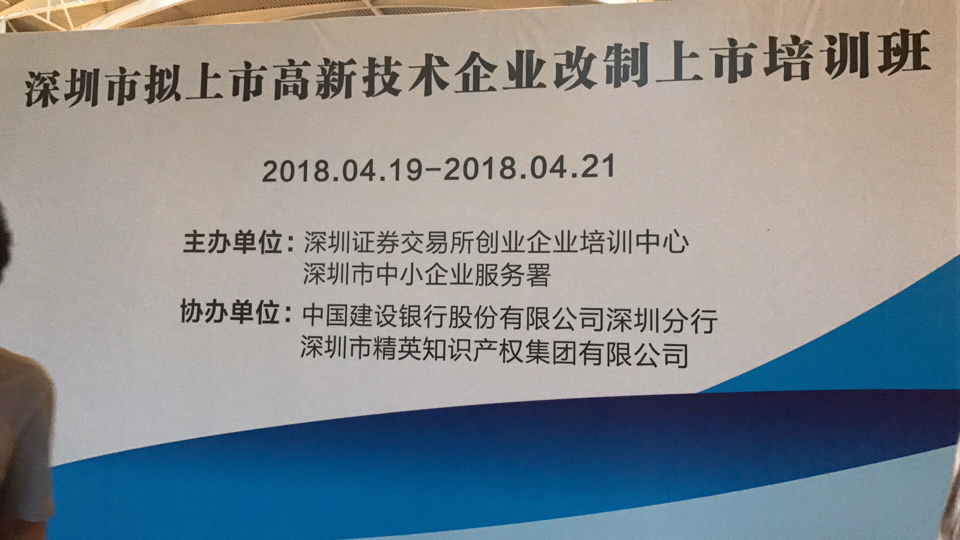 2018年4月19日—21日,由深圳證券交易所創(chuàng)業(yè)企業(yè)培訓(xùn)中心和深圳市中小企業(yè)服務(wù)署主辦,中國建設(shè)銀行股份有限公司深圳分行和精英集團協(xié)辦的“深圳市擬上市高新技術(shù)企業(yè)改制上市培訓(xùn)班”在惠州十里銀灘酒店順利舉行,深圳市近百家上市及準上市企業(yè)參加了本次培訓(xùn)。