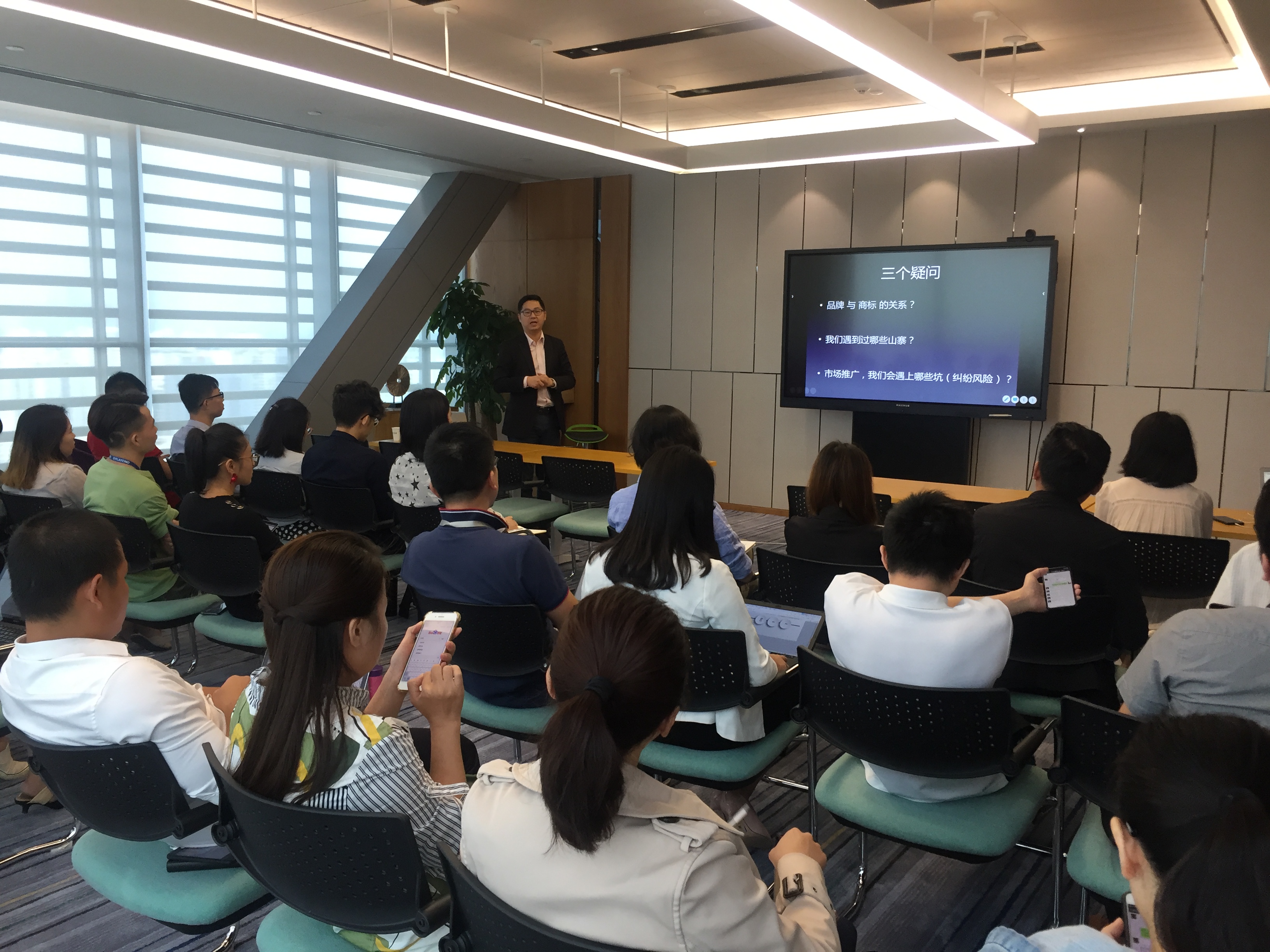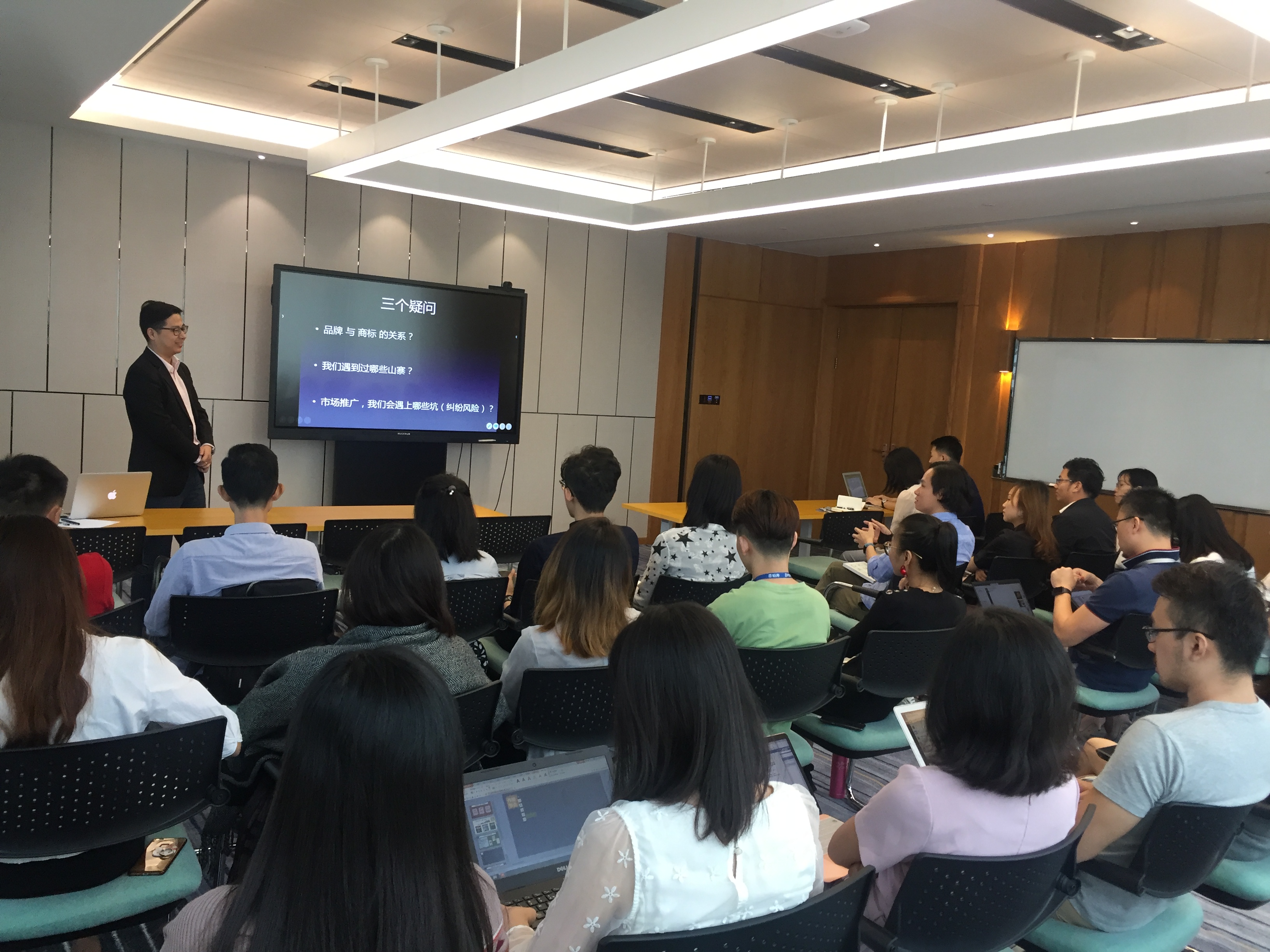 培訓(xùn)會議中田凱總經(jīng)理主要結(jié)合近年來知識產(chǎn)權(quán)侵權(quán)熱點案件進行解析,就品牌型企業(yè)常見知識產(chǎn)權(quán)類型給予分析和法律建議,以及詳細講解了企業(yè)在開展知識產(chǎn)權(quán)維權(quán)工作中權(quán)利規(guī)范使用、風(fēng)險防范和應(yīng)對技巧。企業(yè)各品牌部在培訓(xùn)會議中對知識產(chǎn)權(quán)重要性產(chǎn)生強烈興趣,并就自身的知識產(chǎn)權(quán)問題積極提問。
