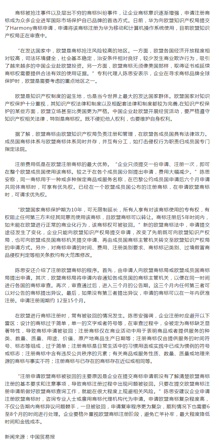 投資歐盟 做好商標(biāo)注冊很關(guān)鍵