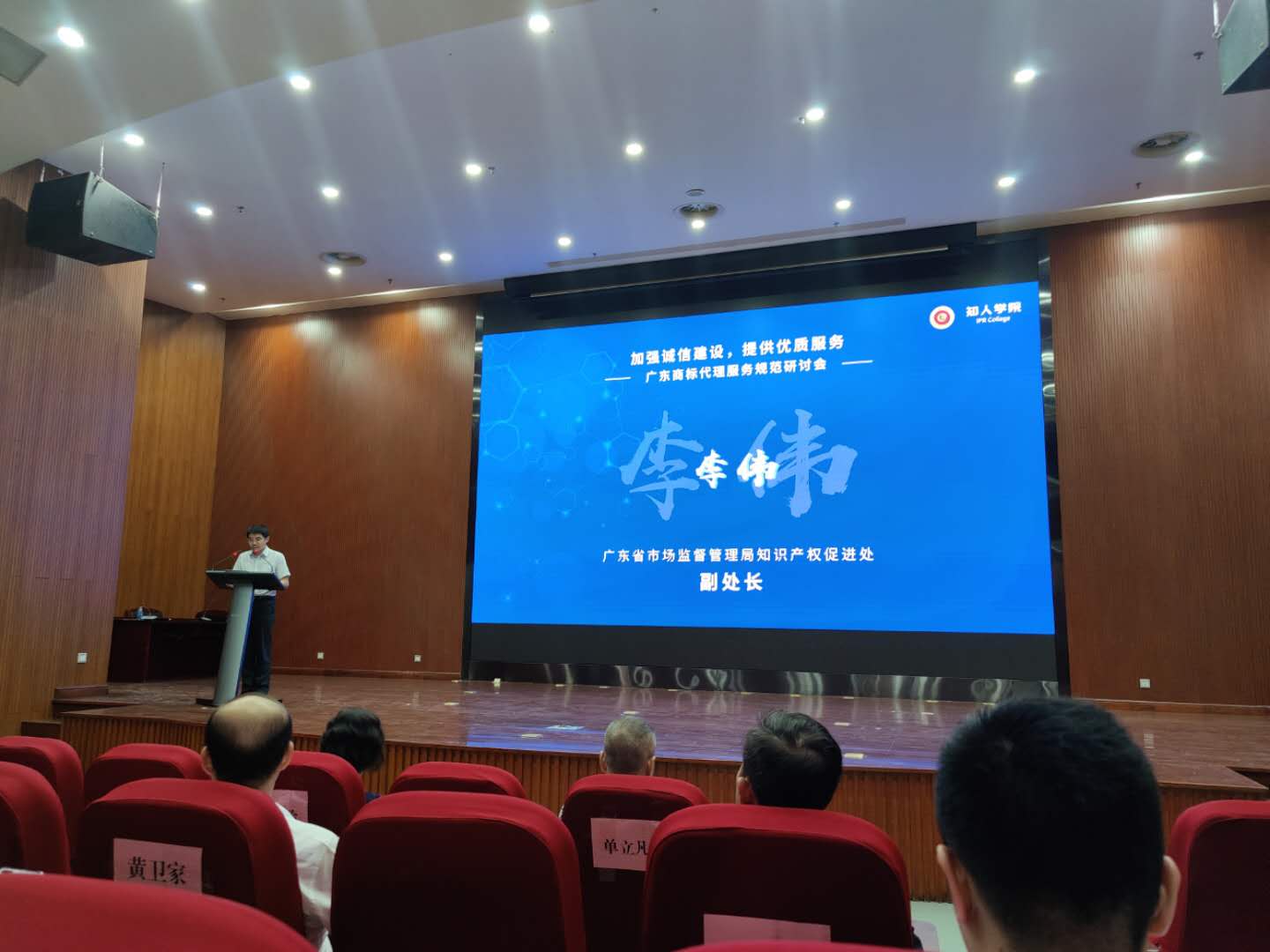 廣東省市場監(jiān)督管理局知識產(chǎn)權(quán)促進(jìn)處副處長李偉、廣州開發(fā)區(qū)知識產(chǎn)權(quán)局副局長陳慧玲先后進(jìn)行了會議致詞,簡要介紹了廣東省商標(biāo)代理機(jī)構(gòu)監(jiān)管的相關(guān)內(nèi)容,指明了開展本次研討會的現(xiàn)實意義和目的。