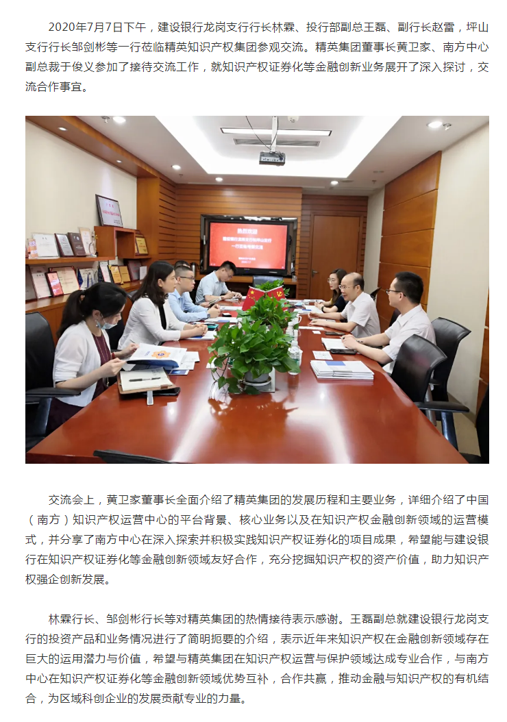 建設(shè)銀行龍崗支行和坪山支行行長一行蒞臨精英集團考察交流